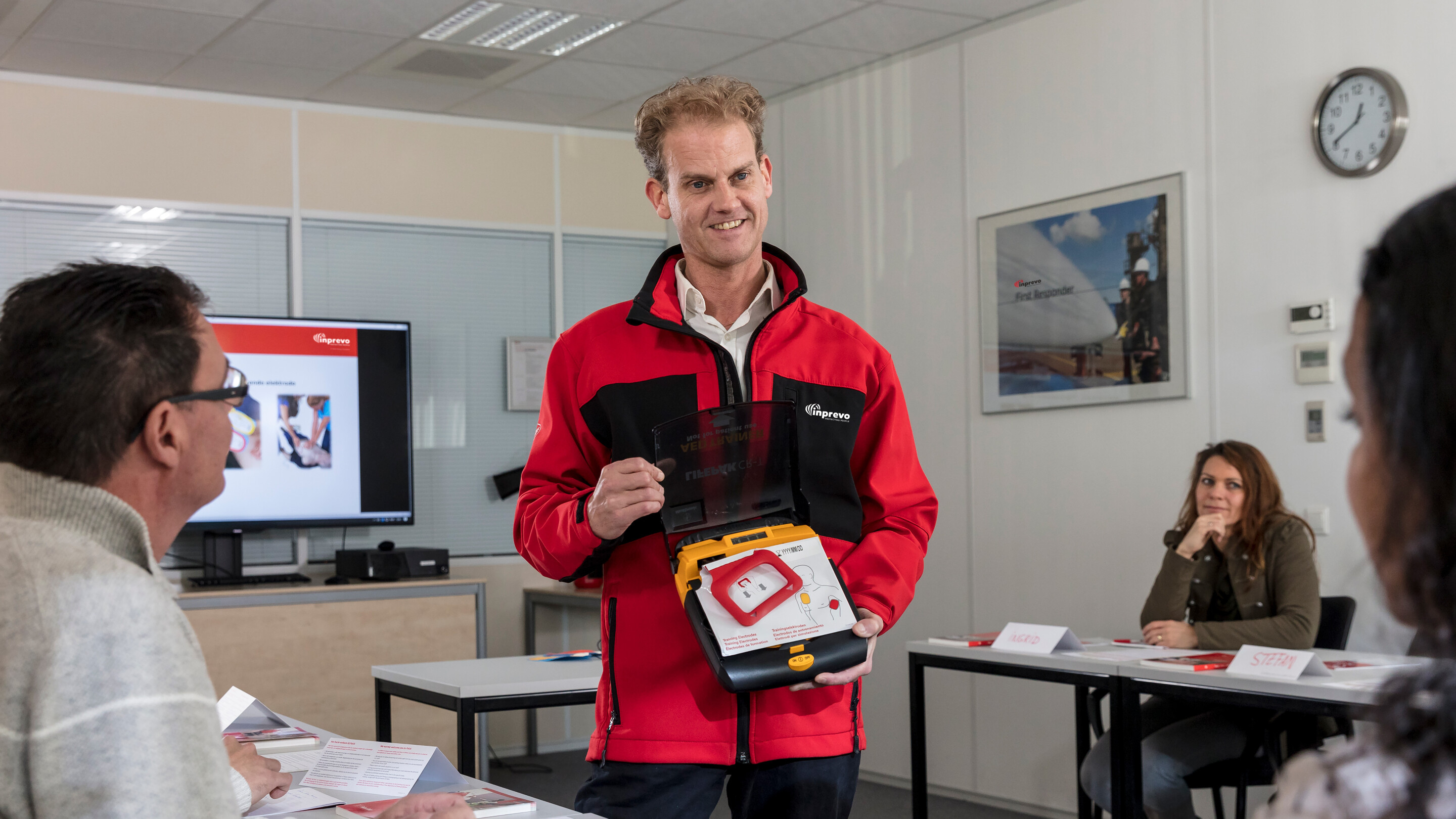Elke deelnemer krijgt de kans om actief te oefenen met reanimatie en het gebruik van de AED.